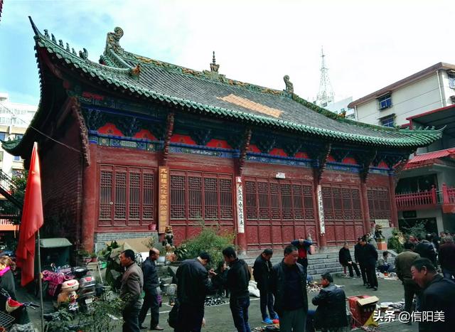 图一 文庙大成殿,位于老城银珠广场西。始建于元代,是信阳市区唯一幸存的古建筑。五楹通长17.7米,进深十米。既有南方秀丽典雅、又有北方浑朴庄重的建筑风格。古时武官下马、文官下轿之地。被评为省级文物保护单位。